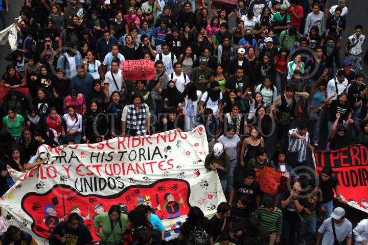 MÉXICO, D.F., 02OCTUBRE2015.- Miles de manifestantes de diversas organizaciones sociales marcharon de la Plaza de las Tres Culturas al Zócalo, para conmemorar la matanza estudiantil del 02 de Octubre del 1968. FOTO: ADRIANA ÁLVAREZ /CUARTOSCURO.COM