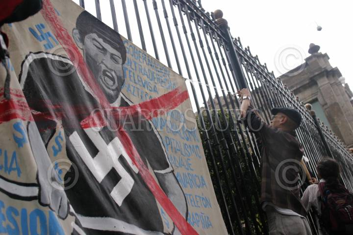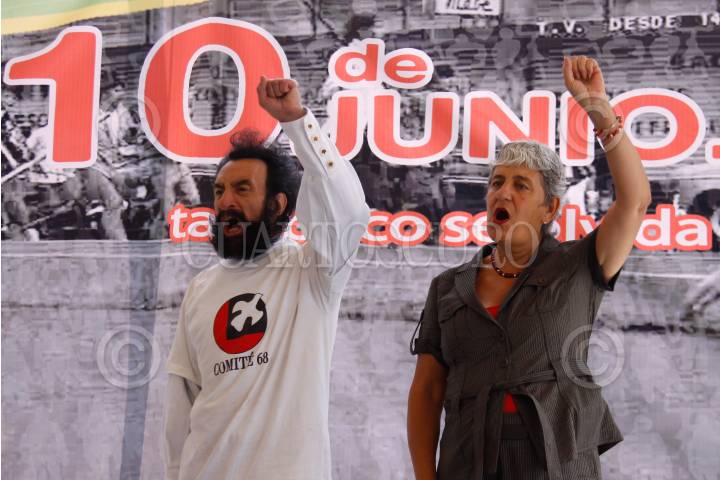 México, D. F. 10 Junio 2004.- En gobernación se llevó a cabo un mitín en conmemoración de la matanza del 10 de junio de 1971. También participaron jóvenes que piden la liberación de sus compañeros detenidos en Guadalajara. FOTO: Nelly Salas/CUARTOSCURO.COM