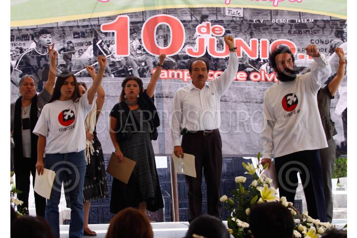MÉXICO, D.F., 10JUNIO2010.- Clara Burgada, delegada de Iztapalapa, Leopoldo Ayala durante la ceremonia en honor de los estudiantes que murieron el 10 de junio de 1971 a manos de un grupo paramilitar creado por Luis Echeverría durante el periodo que se conoce como "El Halconazo". FOTO: IVAN STEPHENS/CUARTOSCURO.COM