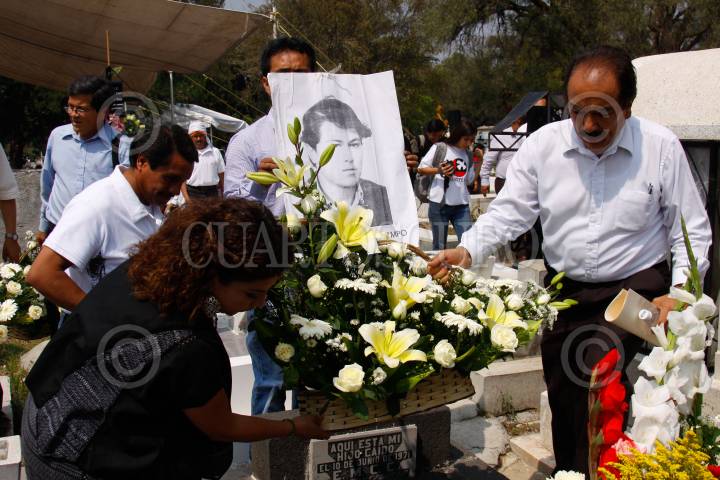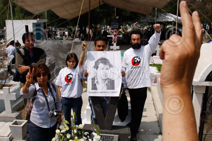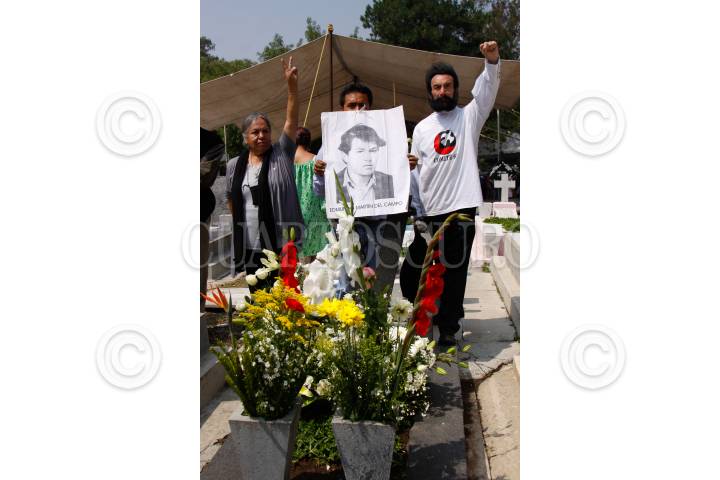 MÉXICO, D.F., 10JUNIO2010.- Leopoldo Ayala, integrante del Comité del 68, montó una guardia en la tumba de Edmundo Martín del Campo durante la ceremonia en honor de los estudiantes que murieron el 10 de junio de 1971 a manos de un grupo paramilitar creado por Luis Echeverría durante el periodo que se conoce como "El Halconazo". FOTO: IVAN STEPHENS/CUARTOSCURO.COM
