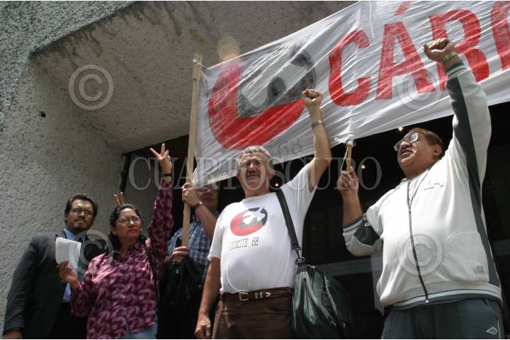 México, D. F. 23 Julio 2004.- Integrantes del comite del 68 se manifestaron a la puertas de la fiscalia especial para delitos del pasado, donde Carrillo Prieto titular de esta fiscalia ofreció una conferencia de prensa sobre el caso de la matanza de 1971. FOTO: Nelly Salas/CUARTOSCURO.COM