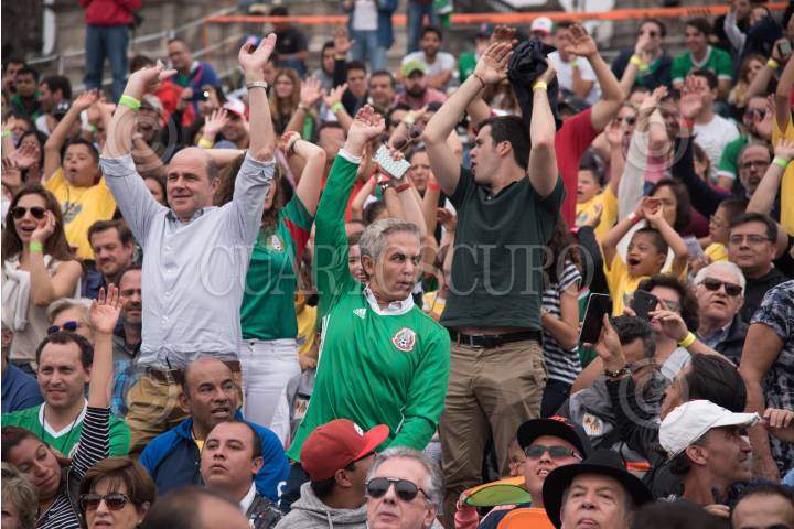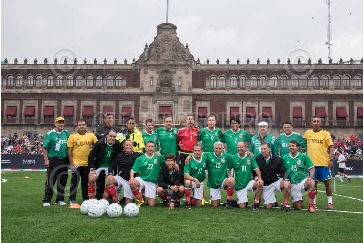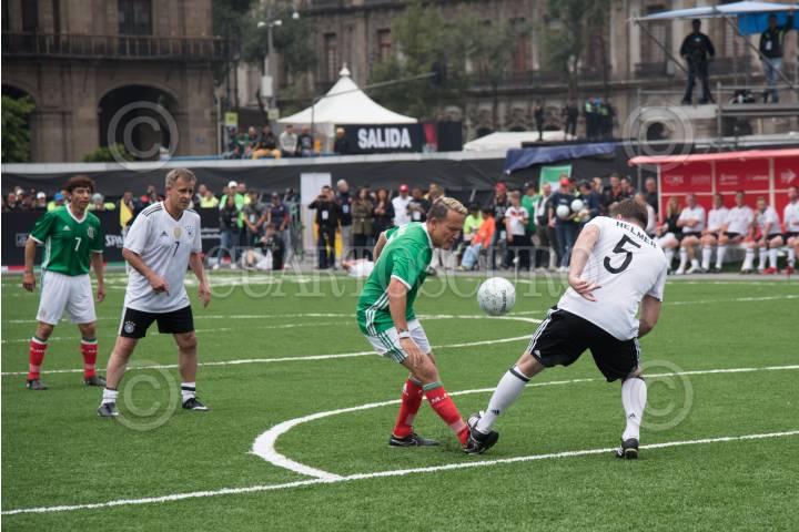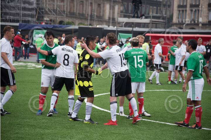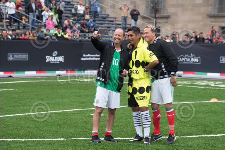 CIUDAD DE MÉXICO, 09JULIO2017.- Jugadores de México y Alemania que conformaron las selecciones de futbol de 1986 y 1998 respectivamente, disputaron el Partido “Las Revanchas” celebrado en la plancha del Zócalo Capitalino. El partido estuvo comprendido por dos partidos, en donde el equipo teutón se llevó la victoria en el primero con un marcador de 3-1, y el equipo azteca triunfó en el segundo con un marcador a favor de 2-0, declarándose así, un empate en todo el partido. FOTO: MARIO JASSO /CUARTOSCURO.COM