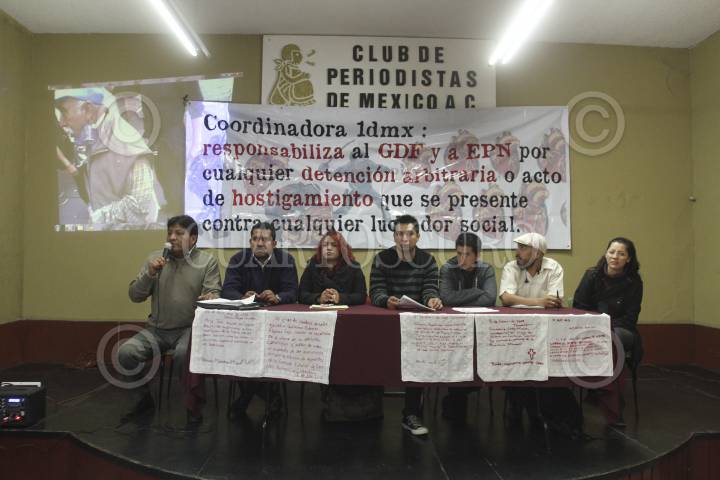 MÉXICO, D.F., 17ENERO2013.- Integrantes de la Coordinadora 1dmx, realizaron una conferencia de prensa para dar a conocer sus acciones que realizaran para exigir la liberación de los detenidos del pasado primero de diciembre del 2012. FOTO: SAÚL LÓPEZ /CUARTOSCURO.COM