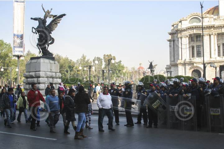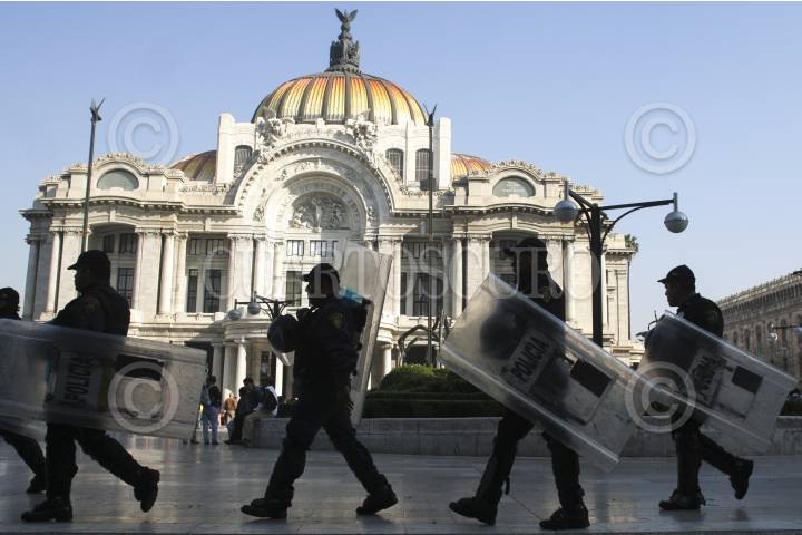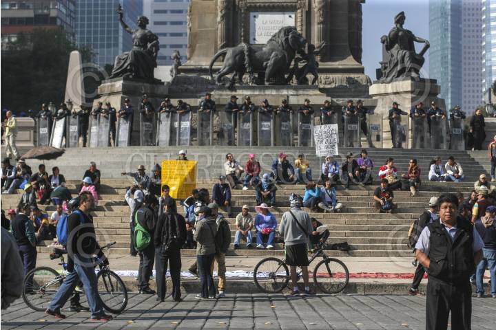 MÉXICO, D.F., 01DICIEMBRE2013.- Distintos contingentes de Maestros organizaciones sindicales y estudiantiles partiran en Marcha desde el Ángel de la Independencia el cual esta resguardado por elementos de la Policia Metropolitana. FOTO: ENRIQUE ORDÓÑEZ /CUARTOSCURO.COM