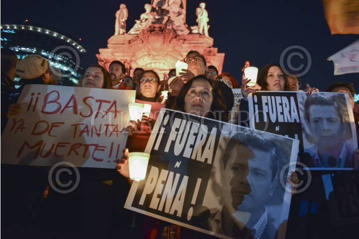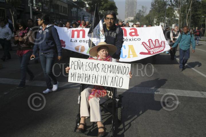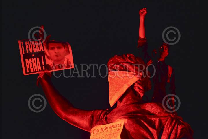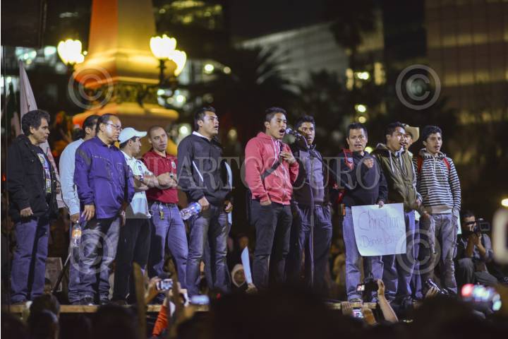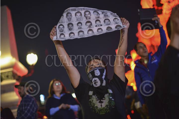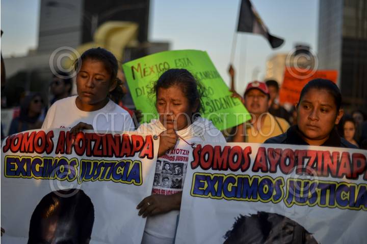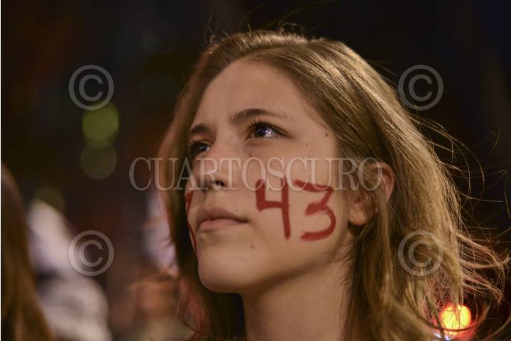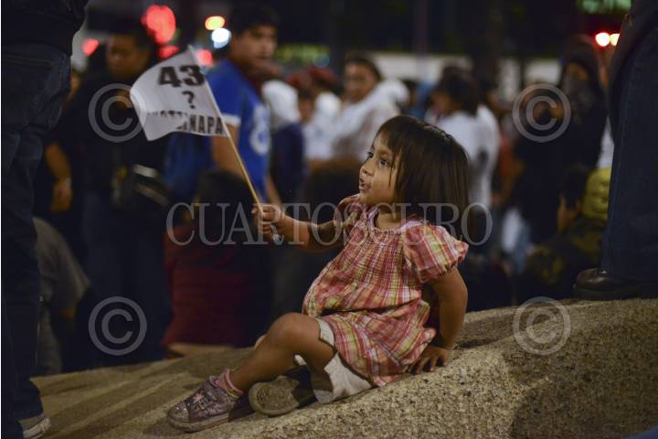MÉXICO D.F., 01DICIEMBRE2014.- De la plancha del Zócalo al Ángel de la Independencia miles de personas, de diferentes organizaciones sociales, estudiantiles y políticas, acompañaron a familiares de los 43 estudiantes normalistas desaparecidos de Ayotzinapa, en la marcha por la aparición con vida de los jóvenes. FOTO: ADOLFO VLADIMIR /CUARTOSCURO.COM