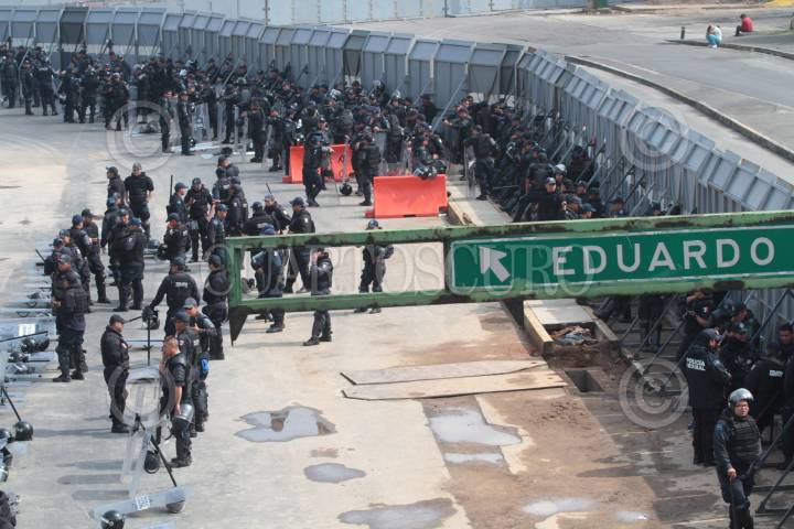 MÉXICO, D.F., 01SEPTIEMBRE2013.- Elementos de la Policia Federal resguardan desde temprano los alrededores de la Cámara de Diputados en donde esta tarde el secretario de Gobernación entregrará el 1er Informe de Gobierno del presidente Enrique Peña Nieto. FOTO: JUAN PABLO ZAMORA /CUARTOSCURO.COM