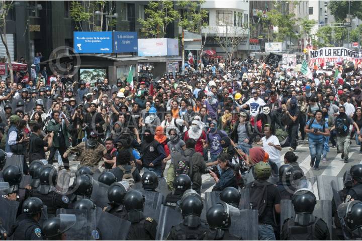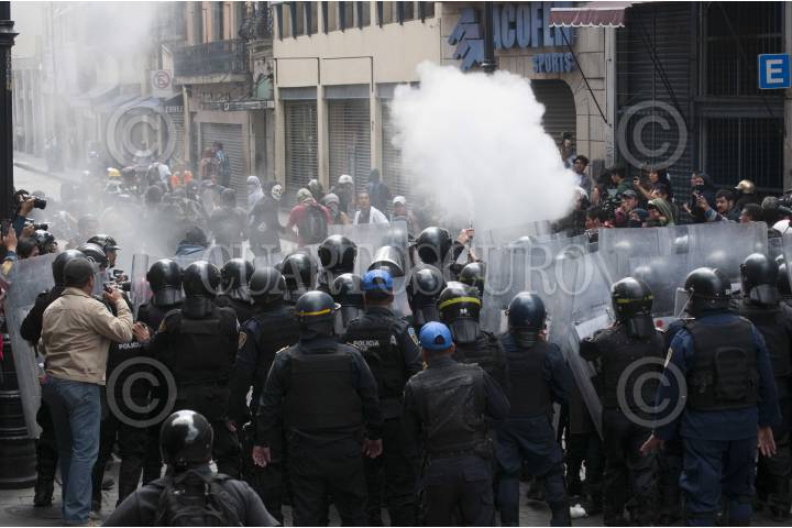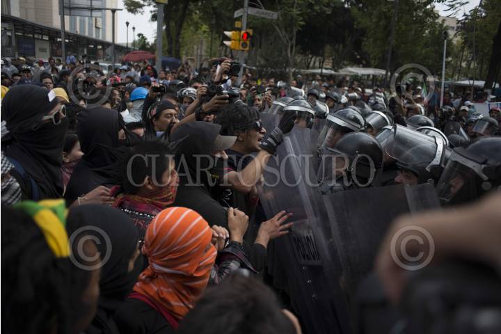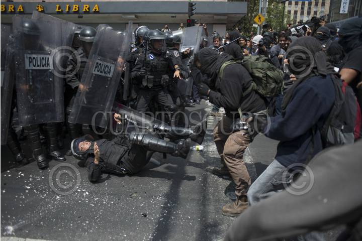 MÉCIO, D.F., 01SEPTIEMBRE2013.- Un grupo de jóvenes que salió del Monumento a la Revolución y se dirige a San Lázaro para protestar por la reforma energética tuvo un enfrentamiento con granaderos a la altura de avenida Juárez. FOTO: ADOLFO VLADIMIR /CUARTOSCURO.COM