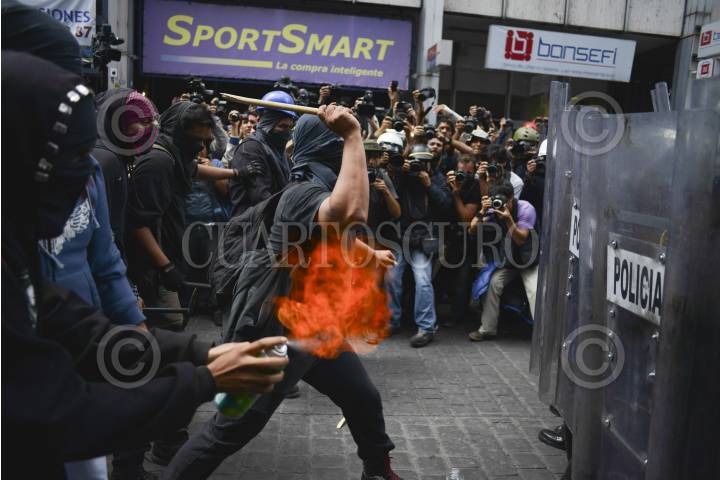 MÉCIO, D.F., 01SEPTIEMBRE2013.- Un grupo de jóvenes que salió del Monumento a la Revolución y se dirige a San Lázaro para protestar por la reforma energética tuvo un enfrentamiento con granaderos a la altura de Venustiano Carranza. FOTO: DIEGO SIMÓN SÁNCHEZ /CUARTOSCURO.COM