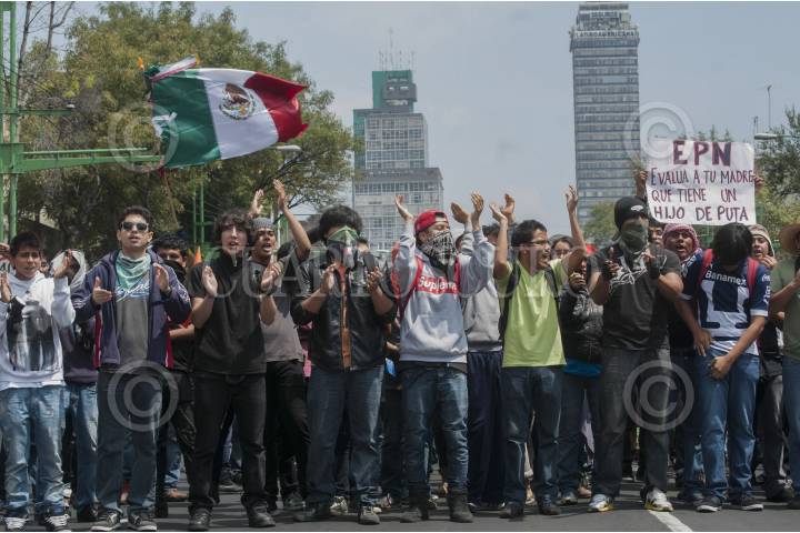 MÉCIO, D.F., 01SEPTIEMBRE2013.- Un grupo de jóvenes que salió del Monumento a la Revolución y se dirige a San Lázaro para protestar por la reforma energética tuvo un enfrentamiento con granaderos a la altura de Eje Central. FOTO: DIEGO SIMÓN SÁNCHEZ /CUARTOSCURO.COM