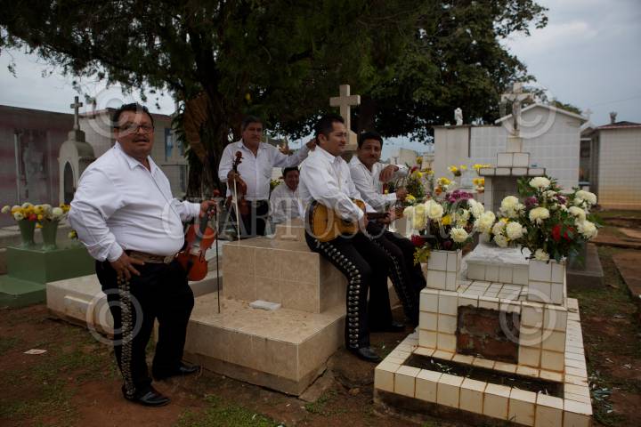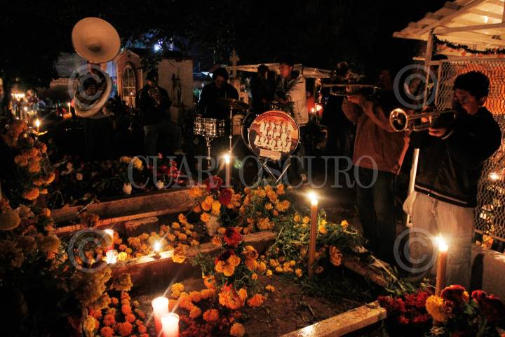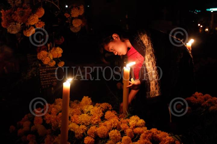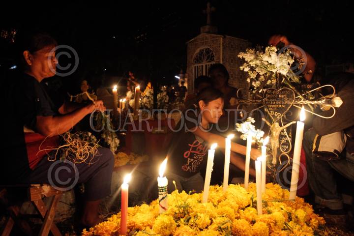 ACATLÁN DE OSORIO, PUEBLA, 02NOVIEMBRE2013.- Cientos de habitantes de la comunidad de Acatlán de Osorio en Puebla, acompañan a sus difuntos con velas, flores, música y rezos durante toda la noche en que estos regresan al mundo de los vivos según la tradición de todos santos. FOTO: HILDA RÍOS /CUARTOSCURO.COM