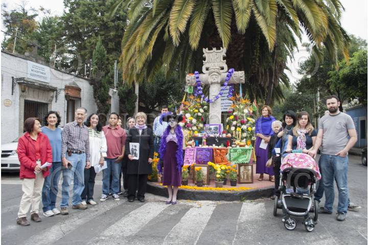 MÉXICO, D.F., 02NOVIEMBRE2013.- Vecinos de Tlalpan se reunieron en el cruce de las calle Calvario y Abasolo para colocar una ofrenda y protestar porque la delegada Maricela Contreras Julián colocó las oficinas administrativas en una casa particular, lo que ha provocado tráfico e inseguridad en la zona, reportan los vecinos. FOTO: MITZI BLANQUET /CUARTOSCURO.COM