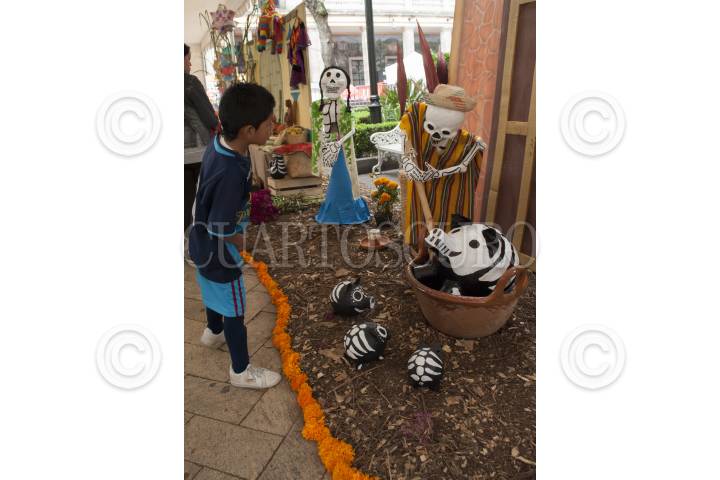 MÉXICO, D.F., 02NOVIEMBRE2013.- Un niño observa la ofrenda colocada en la explanada del Centro Historico de la delegación Tlalpan. FOTO: MITZI BLANQUET /CUARTOSCURO.COM
