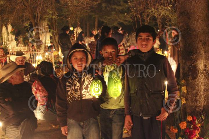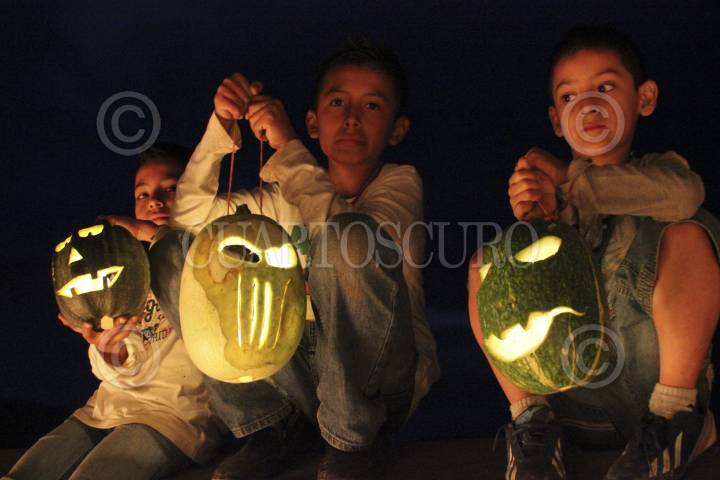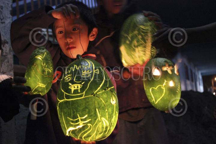 NAHUATZEN, MICHOACÁN, 02NOVIEMBRE2013.- Niños indígenas Purépechas de la comunidad de Turicuaro mantienen viva la practica de las Calaveras que desde antes de la conquista española se venia realizando para la noche del día de muertos, que son elaboradas de calabaza y que se adornan con diferentes dibujos y que es iluminada por una vela en su interior. FOTO: JUAN JOSÉ ESTRADA SERAFÍN /CUARTOSCURO.COM