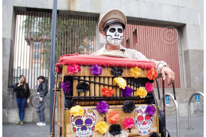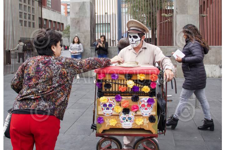 CIUDAD DE MÉXICO, 22OCTUBRE2019.- Un organillero ubicado en el Centro Histórico Capitalino, se caracterizó como catrin con motivo a la época de Día de muertos. FOTO: ANDREA MURCIA /CUARTOSCURO.COM