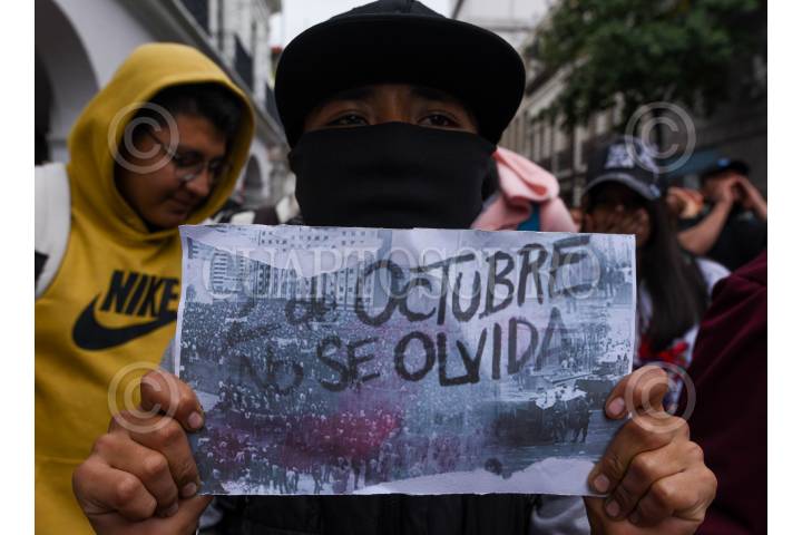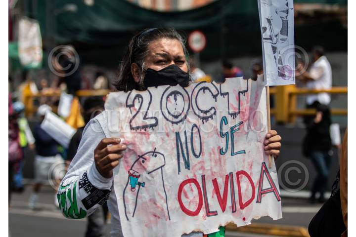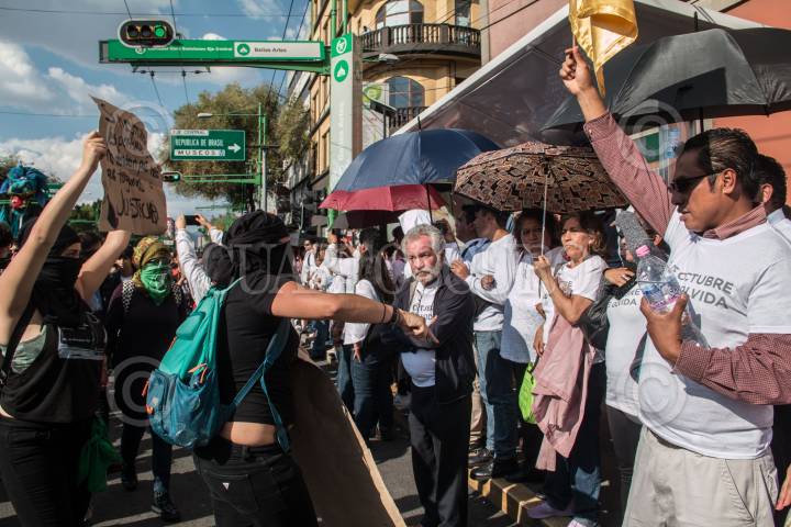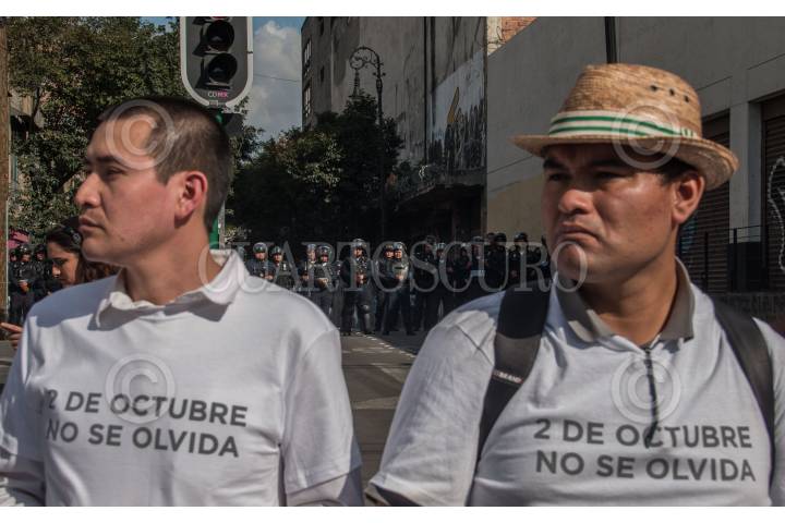 CIUDAD DE MÉXICO, 02OCTUBRE2019.- Miles de estudiantes, normales rurales, organizaciones sociales, campesinos, colectivos anarquistas, comité 68 y de los 43 estudiantes desaparecidos de Ayotzinapa, marcharon de diferentes salidas hacía el Zócalo Capitalino, entre el cinturón de la paz los cuales pretendían evitar que los contingentes de jóvenes anarquistas realizaran destrozos a su paso, esto por el aniversario 51 del ataque estudiantil en Tlatelolco. FOTO: ANDREA MURCIA /CUARTOSCURO.COM