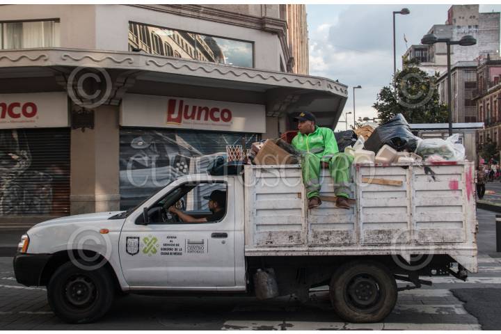 CIUDAD DE MÉXICO, 02OCTUBRE2019.- Trabajadores de limpieza recorren las calles del centro Histórico para realizar limpieza, luego de la marcha en conmemoración del ataque a estudiantes en Tlatelolco. FOTO: ANDREA MURCIA /CUARTOSCURO.COM