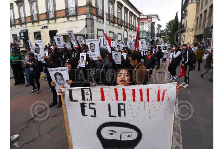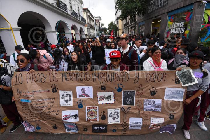 TOLUCA, ESTADO DE MÉXICO, 02OCTUBRE2024.- Estudiantes de Toluca marcharon en de la matanza del 2 de octubre de 1968 en Tlatelolco y la desaparición de los 43 normalistas de Ayotzinapa alzaron su voz para defender sus derechos estudiantiles y exigen justicia para aquellos que fueron silenciados. FOTO: CRISANTA ESPINOSA AGUILAR /CUARTOSCURO.COM