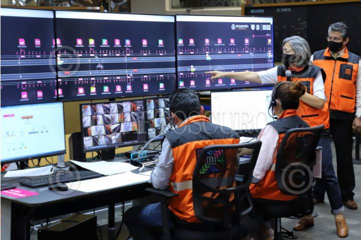 Claudia Sheinbaum Pardo, jefa de Gobierno de la Ciudad durante recorrido en el Centro de Control del Sistema de Transporte Colectivo.
