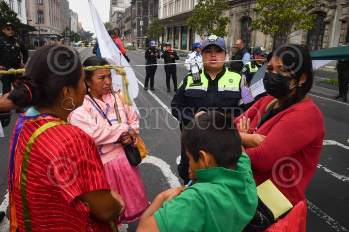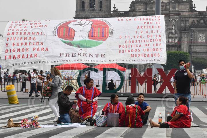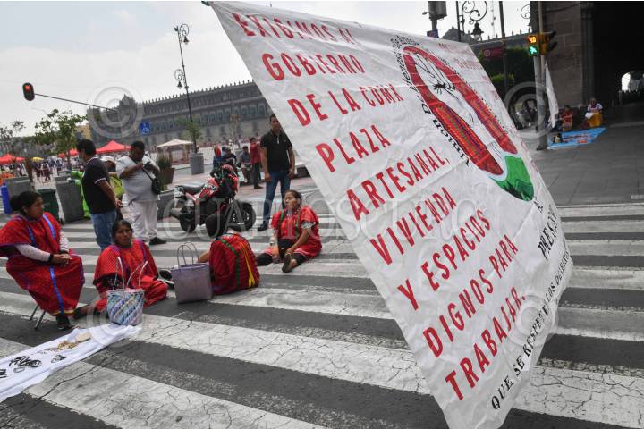 Un grupo de artesanos triquis cerraron el acceso principal de la calle 20 de noviembre con el zócalo capitalino como protesta para solicitar al gobierno capitalino espacios dignos en donde puedan realizar su trabajo.