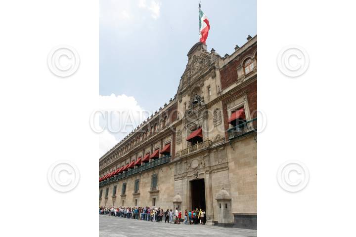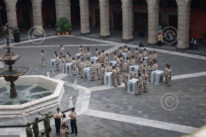 MÉXICO D.F., 29JULIO2011.- Centenares de paseantes acuden a Palacio Nacional, para observar en su ultimo día la magna exposición “México 200 Años La Patria en Construcción” en la cual se muestran las urnas que contienen los restos de los héroes de la patria y los que serán trasladados al monumento del Ángel de la Independencia el día de mañana. Elementos del Colegio Militar, realizan un ensayo para de la ceremonia para el traslado de los restos el día de mañana FOTO: GUILLERMO PEREA/CURTOSCURO.COM