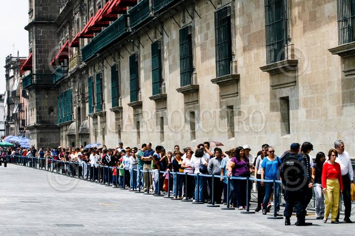 MÉXICO D.F., 29JULIO2011.- Centenares de paseantes acuden a Palacio Nacional, para observar la magna exposición “México 200 Años La Patria en Construcción” en la cual se muestran las urnas que contienen los restos de los héroes de la patria y los que serán trasladados al monumento del Ángel de la Independencia el día de mañana. FOTO: GUILLERMO PEREA/CURTOSCURO.COM
