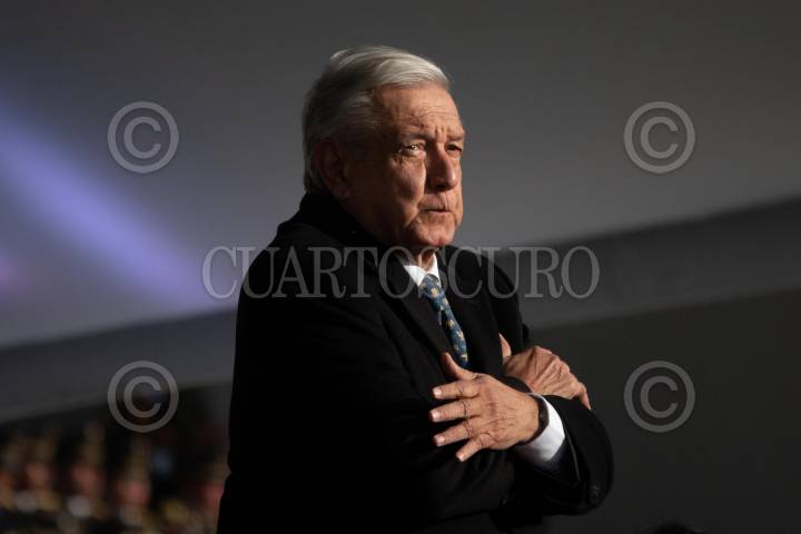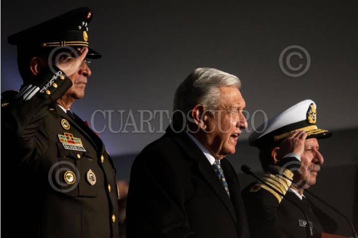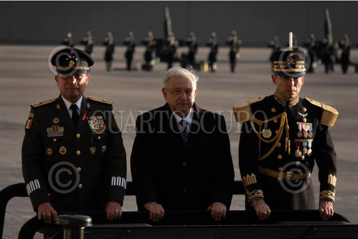 CIUDAD DE MÉXICO, 30NOVIEMBRE2023.- Andres Manuel López Obrador, presidente de México, en compañía de Luis Cresencio Sandoval, secretario de la Defensa Nacional (SEDENA); Rafael Ojeda Durán, secretario de Marina, y Jorge Antonio Maldonado Guevara, director del Heroico Colegio Militar, encabezaron la ceremonia de clausura de la Celebración por el 200 Aniversario de la Creación del Colegio Militar. El evento se realizó en la sede central de la institución en la alcaldía Tlalpan. FOTO: GALO CAÑAS/CUARTOSCURO.COM
