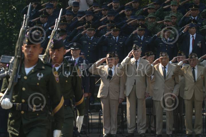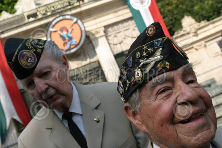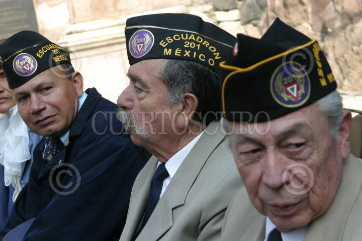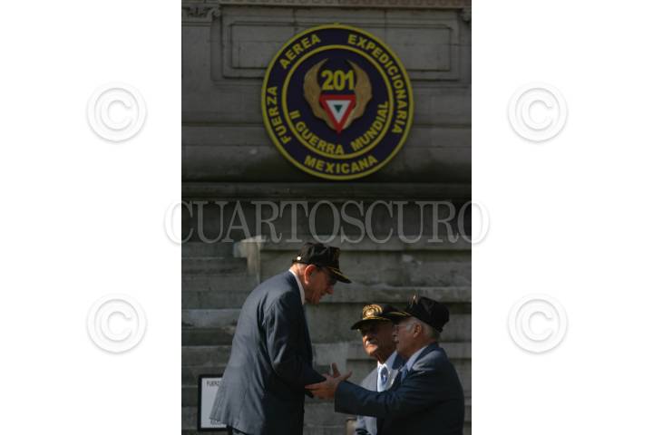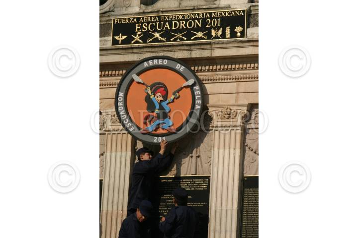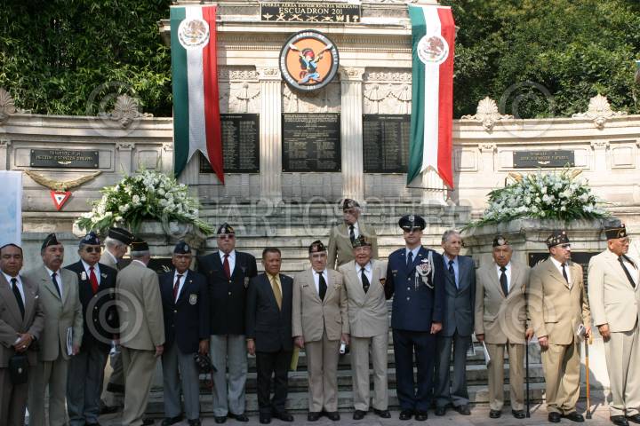 MÉXICO, D.F., 18NOVIEMBRE2009.- En el monumento de la Fuerza Aérea Expedicionaria Mexicana se realizó la Ceremonia Conmemorativa al LXIV Aniversario del retorno a la patria del Escuadrón Aéreo 201 que realizó 96 misiones de combate en las Islas Filipinas durante la segunda guerra mundial en un escuadrón formado por cinco jefes, cuarenta y siete oficiales, y doscientos treinta y siete elementos de tropa. FOTO: IVÁN STEPHENS/CUARTOSCURO.COM