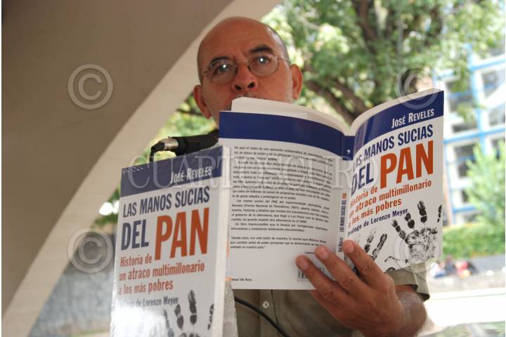 MEXICO, D.F., 23AGOSTO2007.- José Reveles, premio nacional de periodismo 2001, durante la presentación de su libro Las manos sucias del PAN, en el auditorio La Muela, de la Facultad de Medicina de la UNAM. FOTO:CLAUDIA ARÉCHIGA/CUARTOSCURO.COM