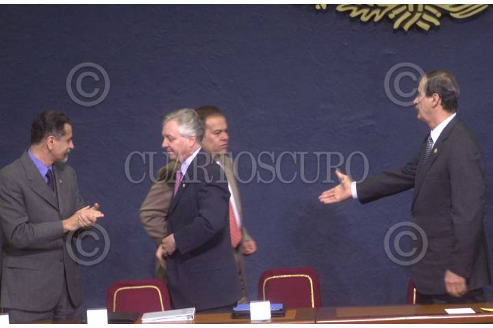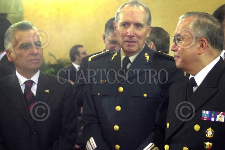 México D.F 18FEB2004.- Rafael Macedo de la Concha, títular de la Procuraduria General de Justicia y Marco Antonio Peyrot títular de la Defensa antes de la entrega del Premio Innovación de la Administración Pública 2003. FOTO: Eunice Adorno/CUARTOSCURO.COM