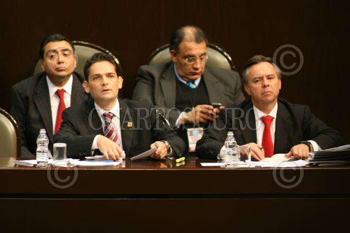 MÉXICO, D.F., 12MARZO2009.- El diputado y coordinador del PAN Héctor Larios conversa con el diputado y coordinador del PRD Javier Gonzalez Garza y con el presidente de la mesa directiva Cesar Duarte durante la entrega del informe del resultado de la revisión y fiscalización superior de la cuenta pública 2007 que se realizo en el salón legisladores de la Cámara de Diputados. FOTO: RODOLFO ANGULO/CUARTOSCURO.COM