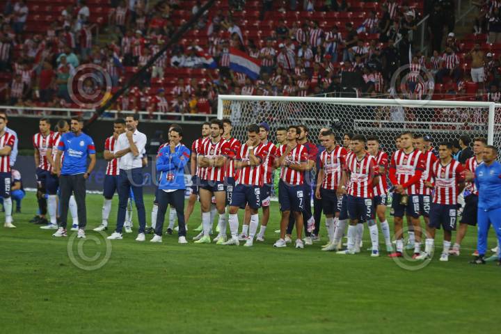 Jugadores de Chivas se lamentan tras dejar ir el campeonato, esto tras ser derrotados por los Tigres, en partido correspondiente a la final del Torneo Clausura Temporada 2022-2023 de la Liga MX.