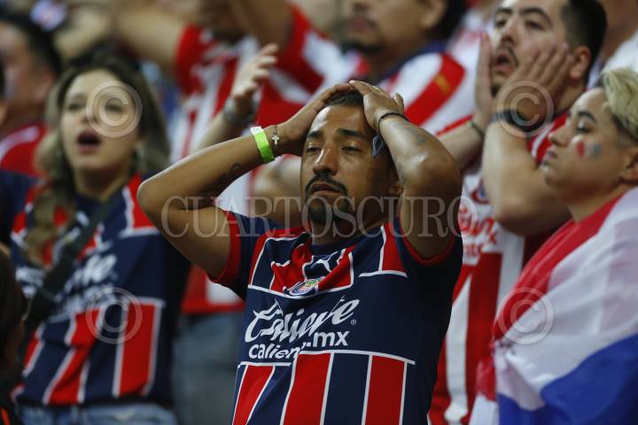 Aficionados de Chivas se lamentan tras dejar ir el campeonato, esto tras ser derrotados por los Tigres, en partido correspondiente a la final del Torneo Clausura Temporada 2022-2023 de la Liga MX.