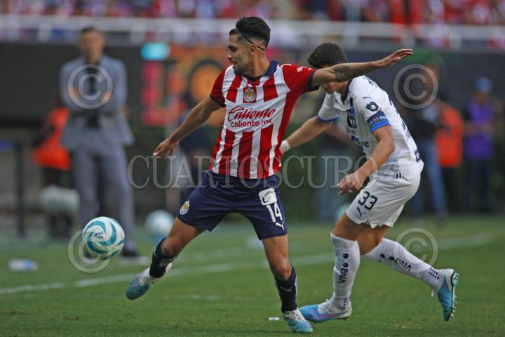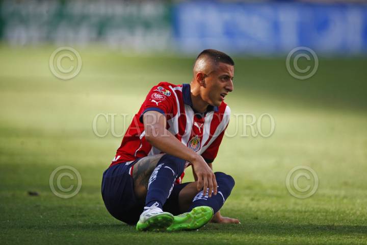 Roberto Alvarado, jugador de Chivas, después de una entrada fuerte, esto en partido correspondiente a jornada 7 del Torneo Apertura Temporada 2022-2023 de la Liga MX.