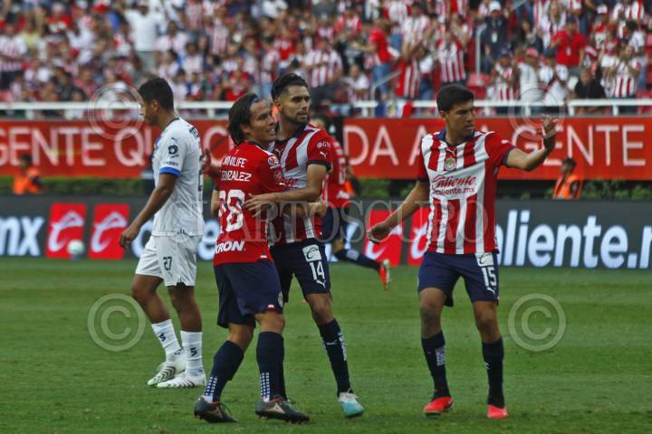 Jugadores de Chivas celebran una de las anotaciones, esto en partido correspondiente a la jornada 7 del Torneo Apertura Temporada 2022-2023 de la Liga MX.