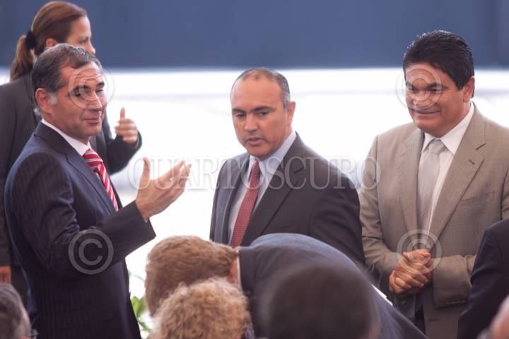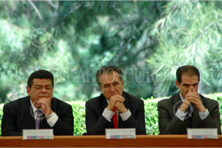 MÉXICO, D.F., 26MARZO2010.- Fernando Ortega Bernés gobernador de Campeche; Marco Antonio Adame Castillo, gobernador de Morelos y Guillermo Padrés Elías, gobernador de Sonora durante la presentación de la Agenda del Agua 2030 que se realizo en la Explanada del Monumento a Francisco I. Madero de la residencia oficial de Los Pinos. FOTO: RODOLFO ANGULO/CUARTOSCURO.COM