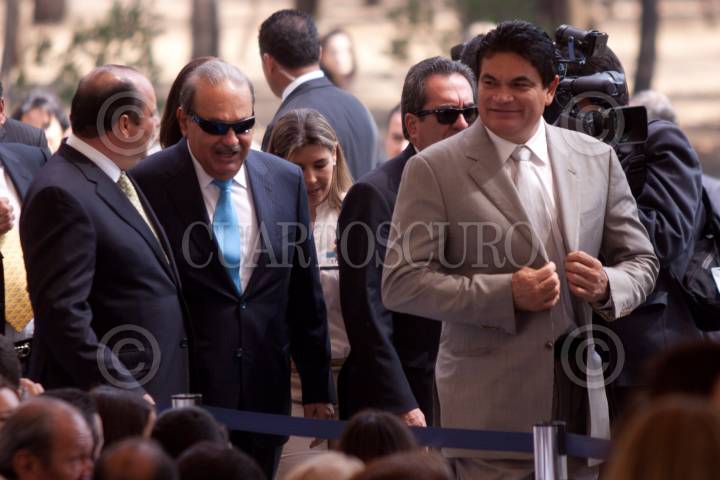 MÉXICO, D.F., 23MARZO2011.- César Horacio Duarte Jáquez, gobernador de Chihuahua; Carlos Slim Helú, presidente honorario vitalicio de Grupo Carso; y Mario López Valdéz, gobernador de Sinaloa; acudieron al Cárcamo de Dolores ubicado en la segunda sección del Bosque de Chapultepec a presenciar el Acuerdo por el Agua 2030. FOTO: IVÁN STEPHENS/CUARTOSCURO.COM