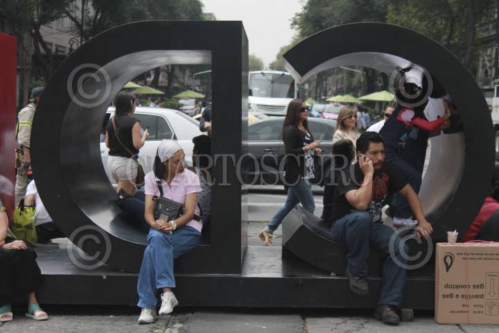 MÉXICO, D.F., 05SEPTIEMBRE2015.- Personas toman un descanso en la plaza de la Constitución de la Ciudad de México, que como parte de la celebración del 205 aniversario del inicio de la Independencia la plaza comienza a adornarse con los colores patrios. FOTO DANIEL HUERTA /CUARTOSCURO.COM