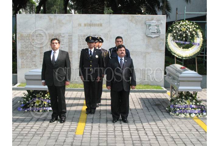 MÉXICO, D.F., 02AGOSTO2007.- Elementos de la AFi y familiares de los dos elementos ejecutados en el estado de Guerrero rindieron un homenaje en sus instalaciones, los elementos habian participado en el decomiso de los 205 millones de dolares al chino y el decomiso de 19 toneladas de efedrina en el Estado de Michoacán. FOTO: PEDRO MARRUFO/CUARTOSCURO.COM