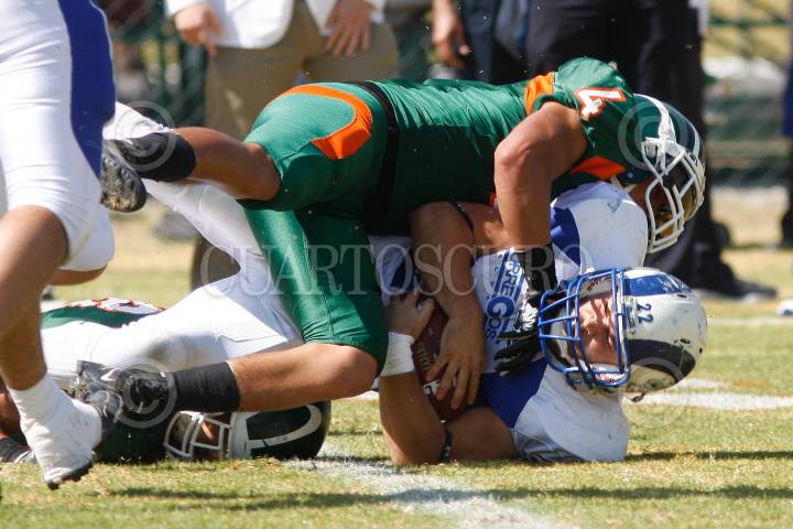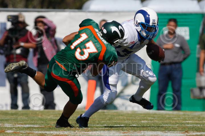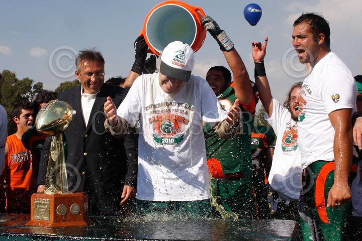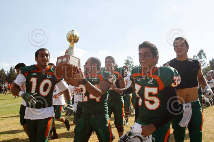 SAN ANDRES CHOLULA, PUEBLA, 20NOVIEMBRE2010.-Con un marcador de 17 a 10 el equipo de fútbol americano, Aztecas de la UDLAP se coronaron campeones de la liga premier de la Confederación Nacional Deportiva de Instituciones Privadas (CONADEIP) tras vencer a los Borregos del ITEMS campus Monterrey. FOTO: FRANCISCO GUASCO/CUARTOSCURO.COM