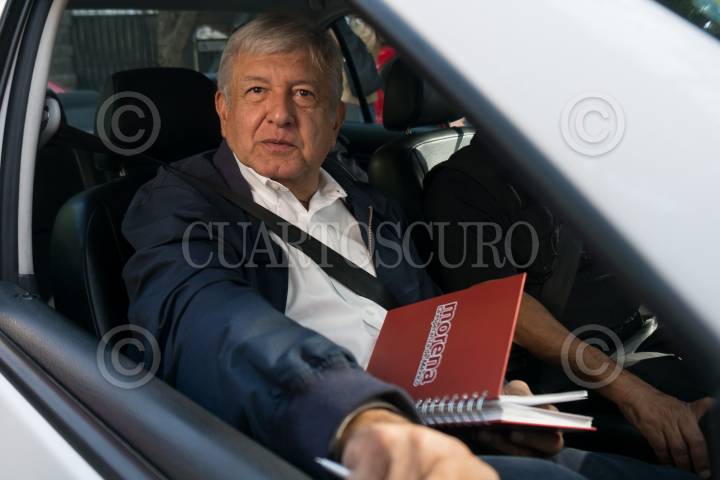 CIUDAD DE MÉXICO, 22JULIO2018.- Andrés Manuel López Obrador, virtual ganador de la eleciones presidenciales, arribó desde temprana hora a su casa de campaña ubicada en la colonia Roma; dónde ya lo esperaban simpatizantes con cartas de peticiones, felicitaciones y currículums, los cuales el morenista atendió desde su auto. FOTO: ANDREA MURCIA /CUARTOSCURO.COM