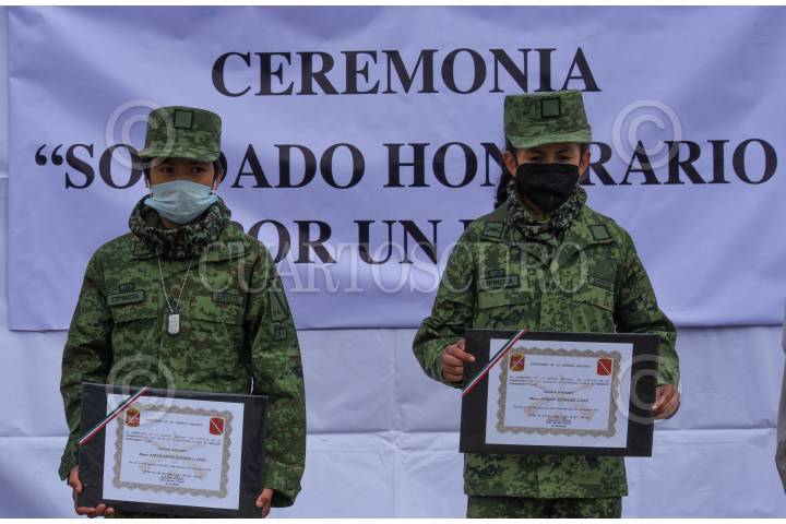 Los hermanos Abigail y Abner de 12 y 14 años de edad lograron cumplir su sueño y formaron parte del programa “Soldado honorario por un día” y convinieron con elementos castrenses en la 22 Zona Militar en Santa María Rayón.