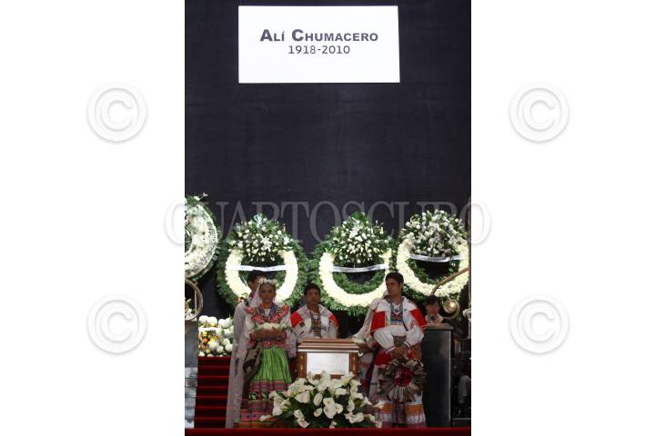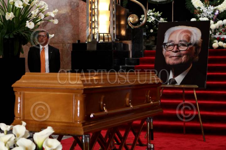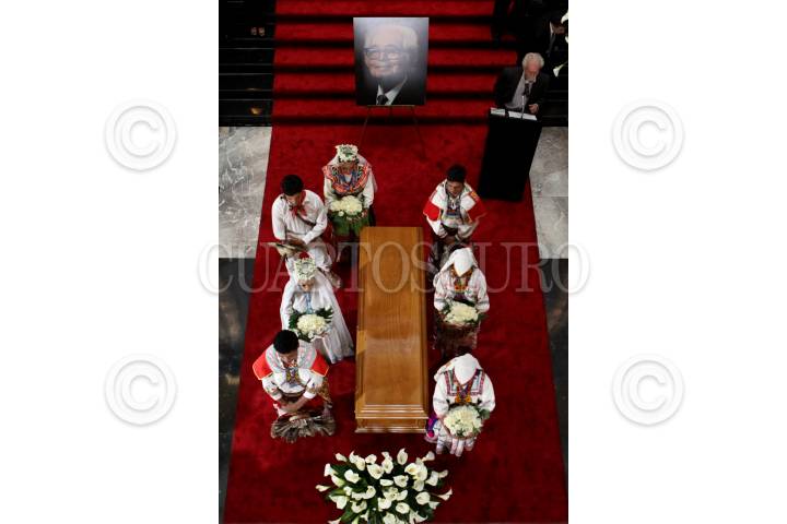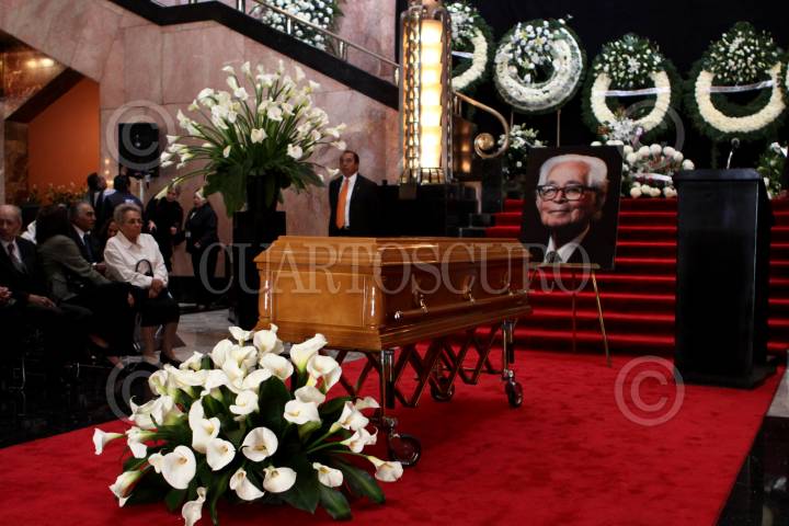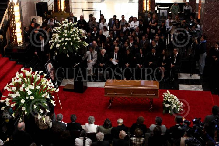 MÉXICO, D.F., 24OCTUBRE2010.- El féretro donde descansa el poeta y escritor Alí Chumacero durante un homenaje de cuerpo presente que se le realizo en el Palacio de Bellas Artes luego de que falleciera el día viernes a las 22:15 horas a los 92 años a causa de una pulmonía. FOTO: RODOLFO ANGULO/CUARTOSCURO.COM