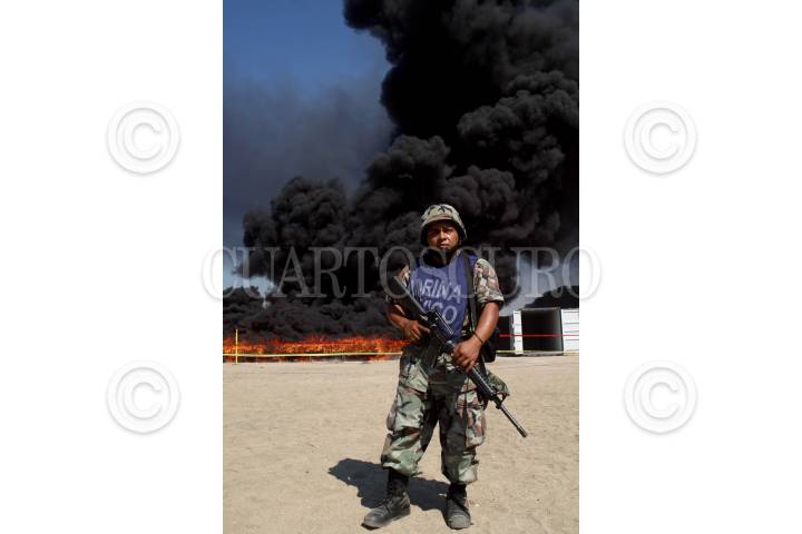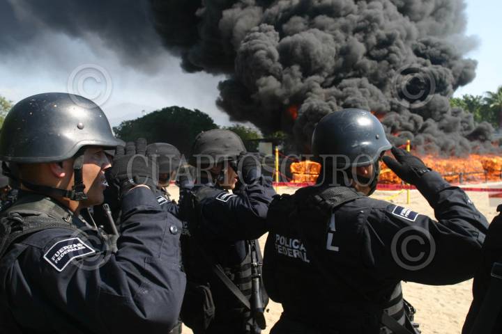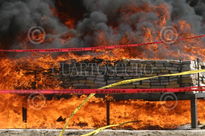MANZANILLO, COLIMA 28NOVIEMBRE2007.- La Secretaria de Seguridad Pública Federal, Marina y Procuraduria General de la República quemaron en la base naval de manzanillo 23.5 toneladas de cocaina decomisada el pasado mes de Octubre. FOTO: SAÚL LÓPEZ/CUARTOSCURO.COM