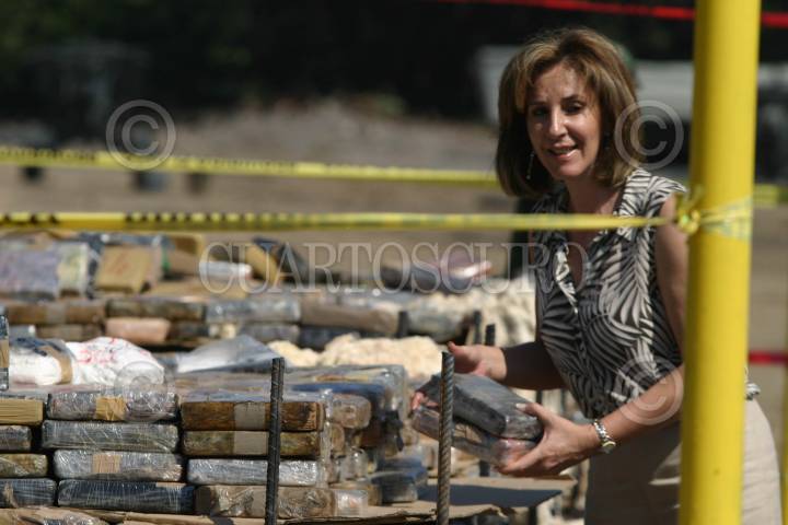 MANZANILLO, COLIMA 28NOVIEMBRE2007.- Maria Elena Moreira presidenta de México Unido Contra la Delincuencia acudió a la quema de 23.5 toneladas de cocaina en la base naval de Manzanillo. FOTO: SAÚL LÓPEZ/CUARTOSCURO.COM