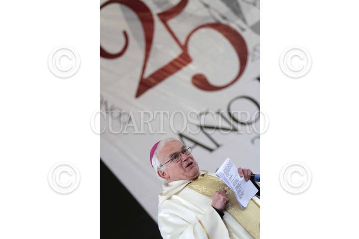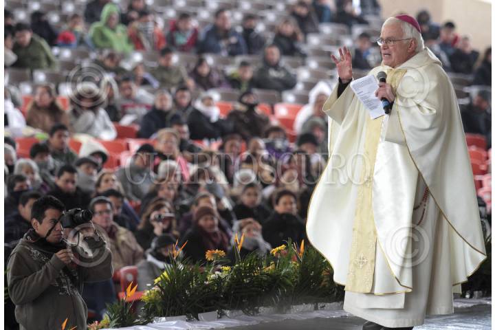 SALTILLO, COAHUILA, 06ENERO2013.- Raúl Vera López, quien se ha distinguido por defender los derechos de los migrantes, indígenas, prostitutas, homosexuales, celebró sus 25 años como obispo con una misa realizada en el Auditorio del Parque las Maravillas. El Obispo estuvo acompañado de otros obispos del Estado, entre otras personalidades de la feligresía católica, además de católicos de todo el país. FOTO: KARLA ITZEL RUIZ /CUARTOSCURO.COM