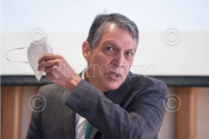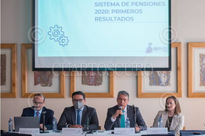 Bernardo González Rojas, Presidente Ejecutivo de AMAFORE, durante conferencia de prensa con motivo del 25 Aniversario del Sistema de Ahorro para el Retiro SAR.