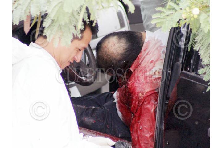 CD. GUADALUPE, NUEVO LEÒN 13 ABRIL 2007.- Se registra la ejecucion número 49 en la entidad en lo que va del año. En esta ocasiòn la victima fuè un hombre de 45 años de nombre; Juventino Leòn, quien fue acribillado en su camioneta tipo Ram 2500, el ahora occiso fue alcanzado por otra camioneta mientras circulaba por la avenida Pablo Livas al oriente de la ciudad, de donde un sospechoso no identificado le propicio una rafaga de almenos 20 disparos. FOTO: CUARTOSCURO.COM