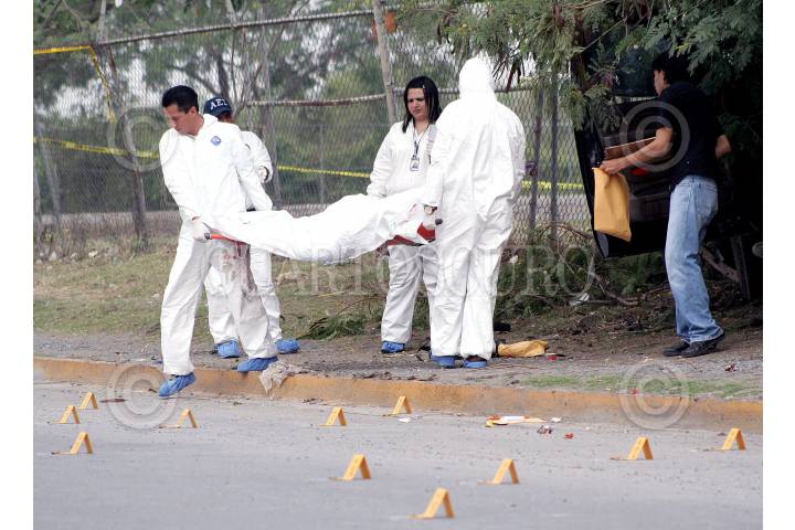 CD. GUADALUPE, NUEVO LEÒN 13 ABRIL 2007.- Se registra la ejecucion nùmero 49 en la entidad en lo que va del año. En esta ocasiòn la victima fuè un hombre de 45 años de nombre; Juventino Leòn, quien fue acribillado en su camioneta tipo Ram 2500, el ahora occiso fue alcanzado por otra camioneta mientras circulaba por la avenida Pablo Livas al oriente de la ciudad, de donde un sospechoso no identificado le propicio una rafaga de almenos 20 disparos. FOTO: CUARTOSCURO.COM