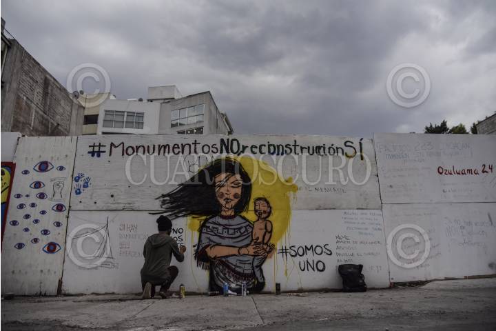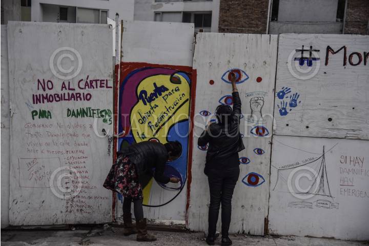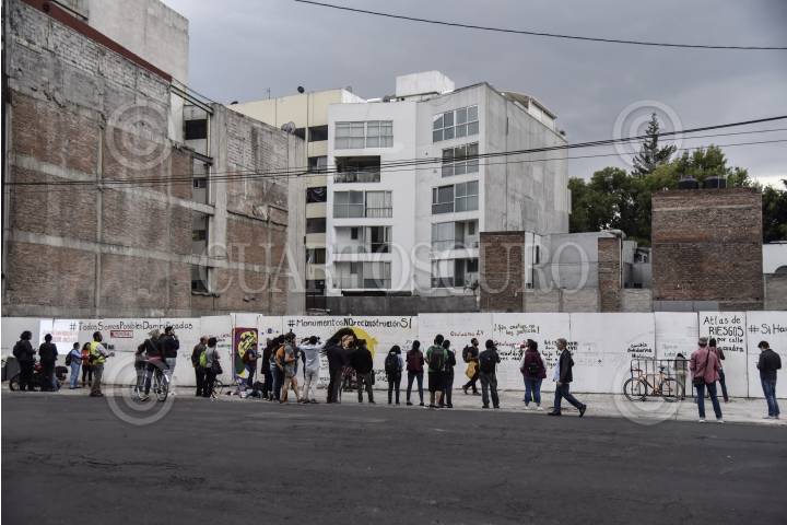 CIUDAD DE MÉXICO, 01MAYO2018.- Grupos colectivos se manifestaron esta tarde en contra de la construcción de un memorial en el sitio donde se encontraba el edificio derrumbado en Álvaro Obregón 286. Las personas demandaron a las autoridades justicia para las personas damnificadas y afectadas por el sismo del 19 de septiembre. FOTO: MARIO JASSO /CUARTOSCURO.COM
