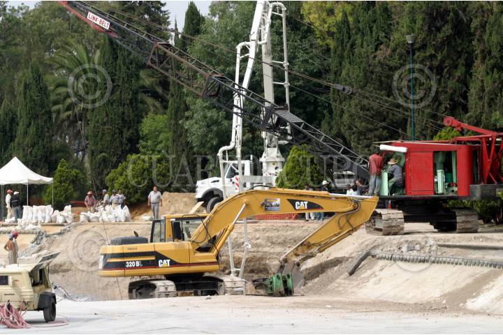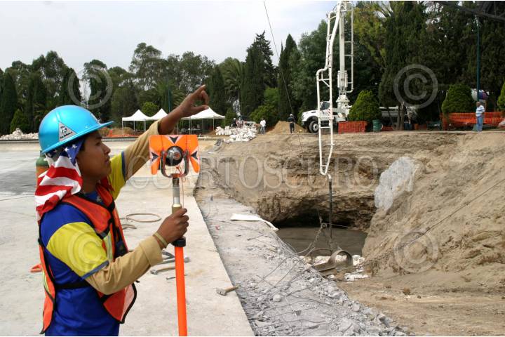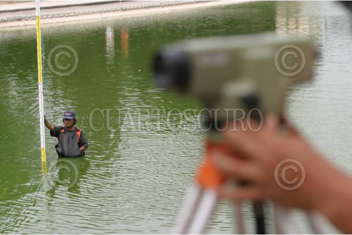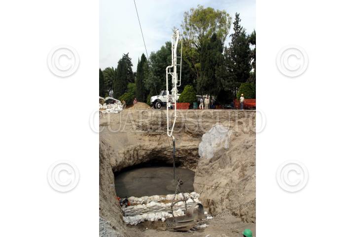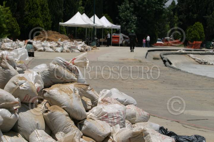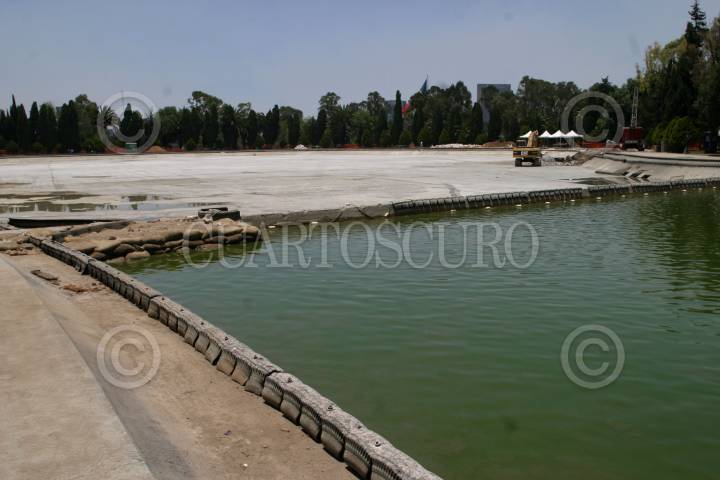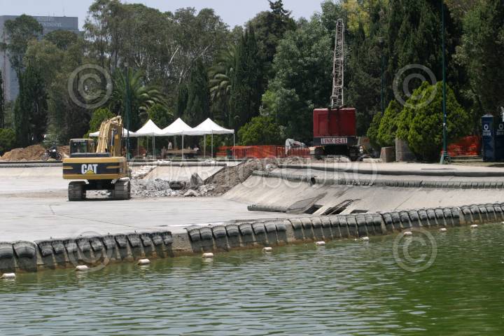MEXICO, D.F. 15JUNIO2006.- Continua el relleno del boquete que se formó en el lago de Chapultepec en la 2da. Sección del Bosque. FOTO: Guillermo Perea/CUARTOSCURO.COM